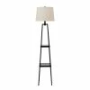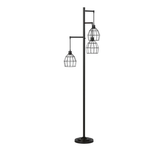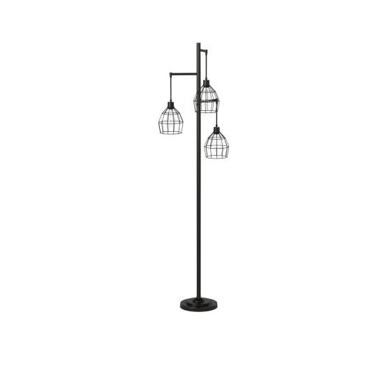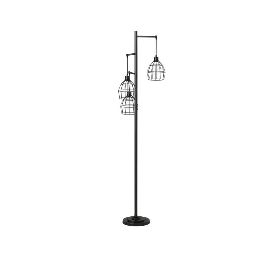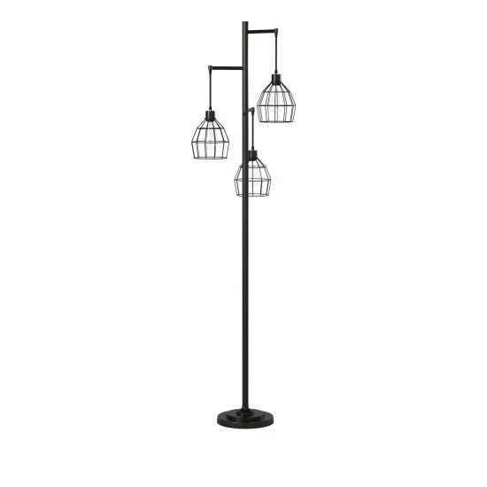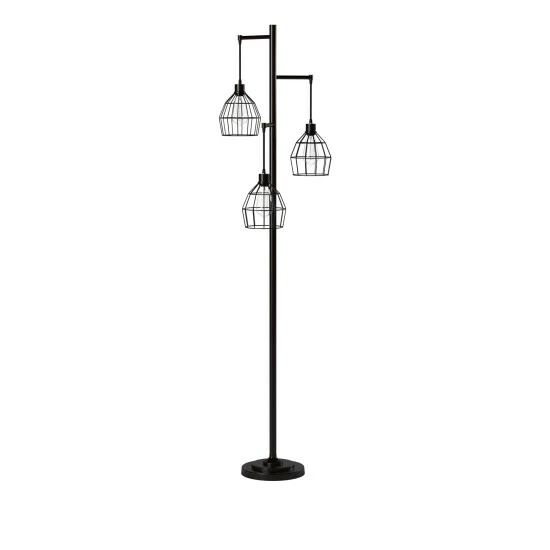 This floor lamp comes in a black finish with shade; Requires three (3) 40-watt Incandescent base bulbs (not included).