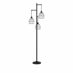 This steel floor lamp incorporates a vintage inspired style to create a distinctly modern look. A three light design, it uses a tall single bar design with three wire shades to create a graceful and elegant form. Ideal for accompanying sofas and sitting areas, it’s a wonderful accent lamp that’s equal parts functional and fabulous.