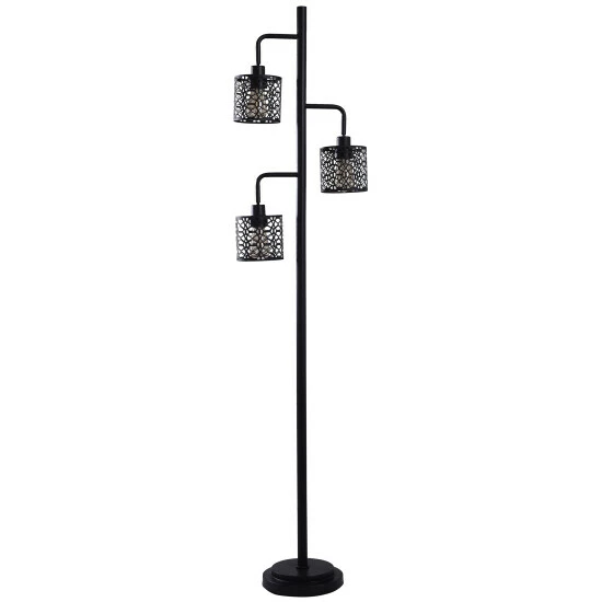 This floor lamp comes in a black finish with shade; Requires three (3) 40-watt Incandescent base bulbs (included).