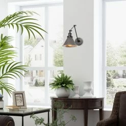 - This transitional swing arm wall lamp is an attractive task and reading light.