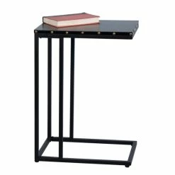 Chic industrial flair is on full display in this alluring c-shaped end table. The brilliant design can be pushed over the arm of a sofa or arm chair, making this table perfect for holding up a special cup of tea or popcorn for movie night.