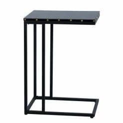 Chic industrial flair is on full display in this alluring c-shaped end table. The brilliant design can be pushed over the arm of a sofa or arm chair, making this table perfect for holding up a special cup of tea or popcorn for movie night.