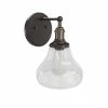 Crafted from metal, this fixture features a clean-lined rectangular frame in a rustic hand-brushed black finish for a vintage appearance. Its three lights are nearly exposed, each highlighted by a cylindrical, seeded glass shade to cast a warm upwards glow.