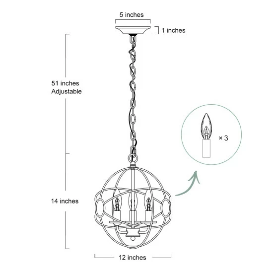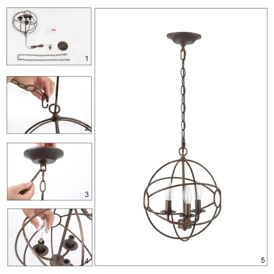 Crafted of iron, this modern pendant features a classic spherical design and rusty finishes. Built-in three classic candlesticks, this large pendant showcases minimal while sophisticated, classic while stylish flair. Thanks to the open-framed design, light can give off unimpeded and provide enough brightness needed. No matter hanging in the living room, dining room, bedroom, entrance, or foyer, it always is the ideal choice.