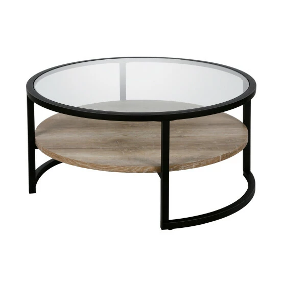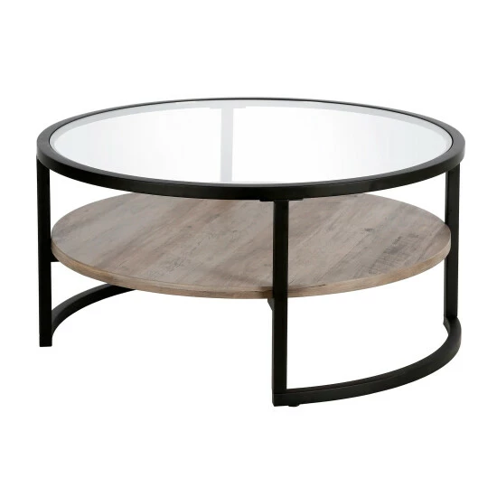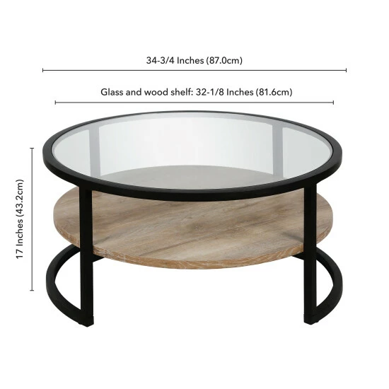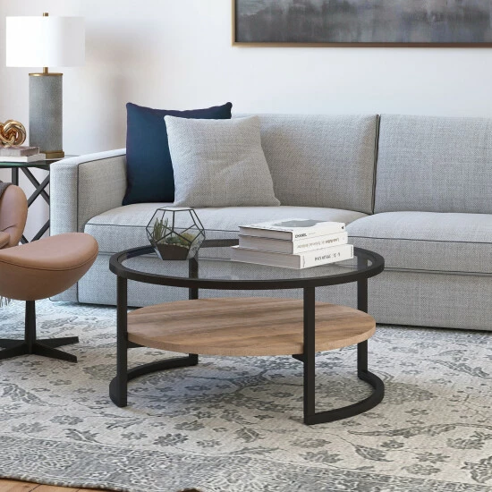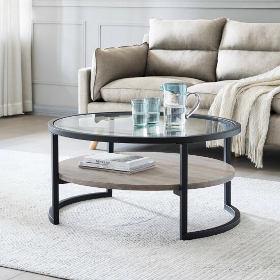 This elegant and classic coffee table is the perfect pick for your living room or den ensemble. Its base mirrors the shape of the tempered glass table top and shows off the architectural connection and carries the structured design through the frame. An industrial style wooden shelf can hold up to 40 lbs capacity. :