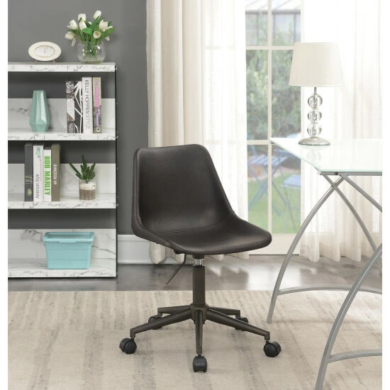 If you prefer a no-frills office space, this simple, brown office chair is an excellent choice. The curved seat offers the perfect amount of support for an efficient workday. Brown fabric upholstery and a matching brown base gives it a no-nonsense look. Smooth caster wheels and an adjustable base add classic comfort and functionality. From rustic to contemporary and more, its unassuming design works well in most any space.