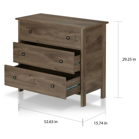 - 3-drawer Dresser: 29.25 inches high x 33.54 inches wide x 15.74 inches deep