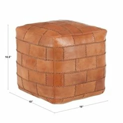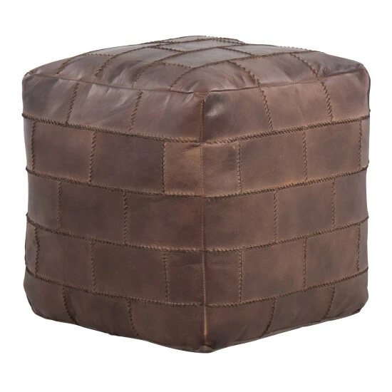 Warm-up your decor with the earthy look of the Najah Pouf ottoman. Perfect for propping up your feet or extra seating, this unique square pouf ottoman features unique leather patchwork stitching.