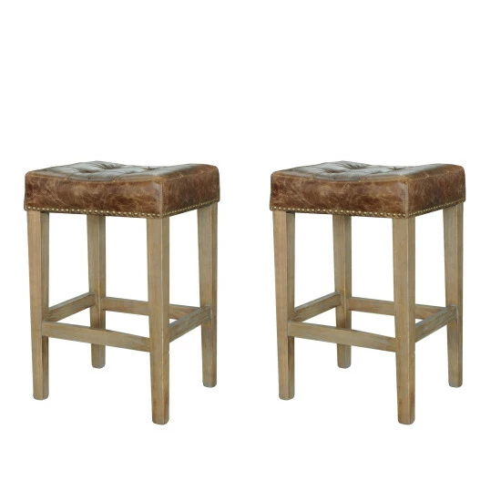 Bring refreshing style and French country warmth into your home with the classic sophistication of these handsome stools. The natural oak legs are topped with tan leather for a sumptuous, elegant look that fits in with a wide variety of decor schemes.