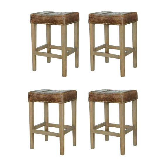 Lend chic, timeless style to your home with the classic style of these handsome stools. The natural oak legs are topped with tan leather for a sumptuous, elegant look that fits in with a wide variety of decor schemes.