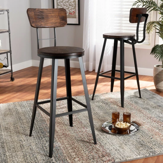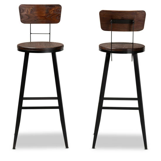 Transform your eating area with these striking Kenna bar stools. Featuring a vintage style that complements both modern and retro decor schemes, these stools boast metal, plywood, and elmwood construction, making them a durable, lasting addition to your home. The curved backrests and solid footrests boost the comfort of these rustic stools.