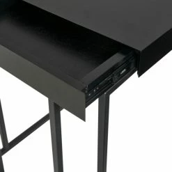 - Material: MDF with solid wood veneer, solid wood drawer, metal base