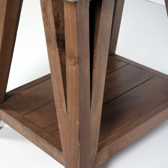 Refresh and enliven your decor with this chic and unique table. An extra plank of wood across the bottom provides shelf space for trays, plants, books, or electronics, putting them in easy reach without cluttering the table top.