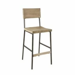 This striking and eye-catching bar stool shows that a simple design never goes of out of style. The chair combines deep textured planks of mindi wood with the support of steel frames for a simple industrial look; an easy addition to any dining room.