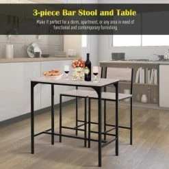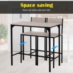 Set up a spot for entertaining family and serving up breakfast with this industrial table and stool set. This table set features a wide bar table and two matching high-back stools that tuck neatly underneath the table when not in use. It is made from a powder-coated steel frame and scratch-resistant MDF for years of enjoyment and almost zero maintenance.Β