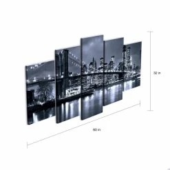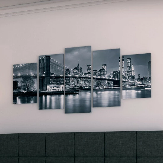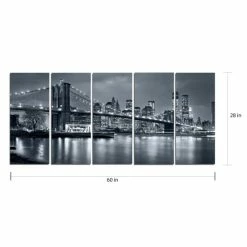 Bring the glamour of the New York City lights to your decor with this panorama cityscape print. The print features a black and white view of the New York skyline as seen from behind a large bridge. The picture is spread across a variety of panels, and printed using fade-resistant inks on premium quality cotton canvas that completes the modern and trendy appeal of this breathtaking set.