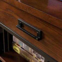 Add a rich and crisp look to your home decor with this appealing bookcase. This bookcase features three shelves and one drawer at the top to give you the option to store several items that you want to display. The bookcase features fresh wooden tones and is constructed with blackened metal mission slats for increased durability.