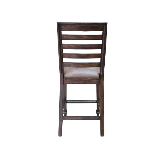 Add elegance and grace to your dining space. Brimming with rich, rustic vibes, this counter height dining chair is sure to delight. Topped with a padded leatherette cushion, it creates a cozy dining environment for you and your loved ones to enjoy. The ladder style back provides plenty of support as you relax over leisurely meals. Counter height stool is crafted of sturdy Asian hardwood for a durable design that’s built to last.