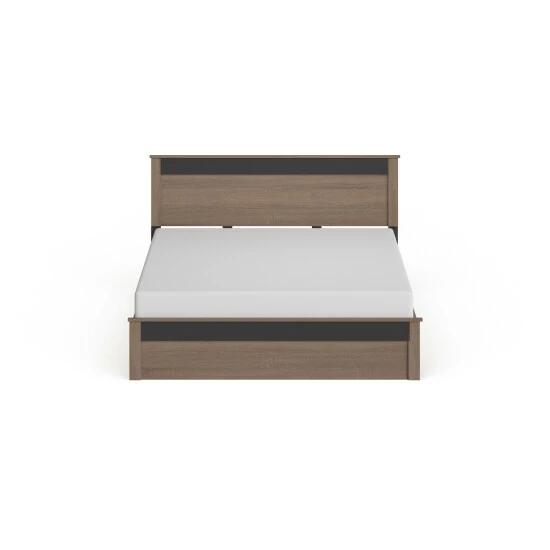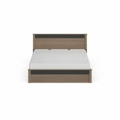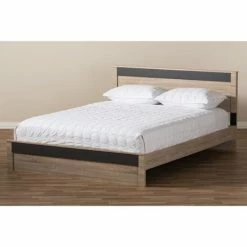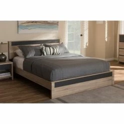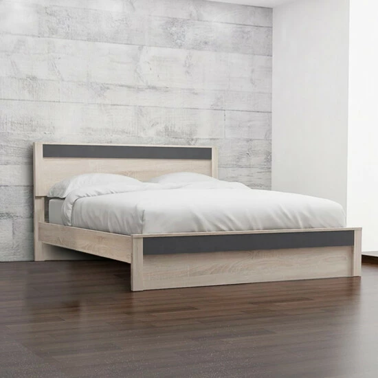 With a fabulous two-tone oak and dark grey finishing, this gorgeous platform bed displays a clever use of colors. Built of engineered wood, this piece consists of a platform bed base with sturdiness and charming style, to boot.