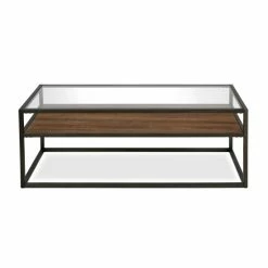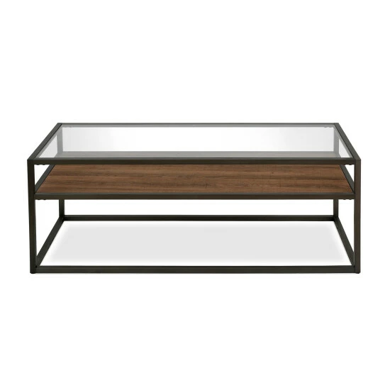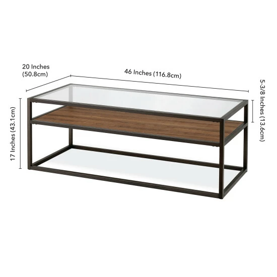 Simple and stylish, this industrial modern take on a classic design fits perfectly in any space. A seamless blend of mixed materials gives this table an industrial style that’ll make your space looks warm and inviting. Easy to assemble and easy to style, the tempered glass top, oak shelf and blackened bronze finish make it the perfect addition to your living room or den ensemble.