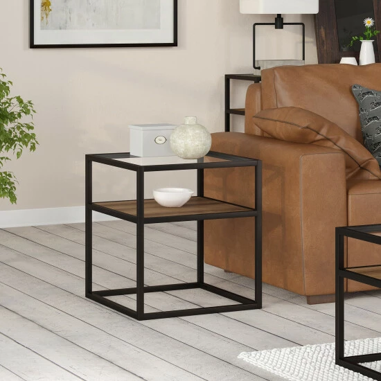 Simple and stylish, this industrial modern take on a classic design fits perfectly in any space. A seamless blend of mixed materials gives this table an industrial style that’ll make your space looks warm and inviting. Easy to assemble and easy to style, the tempered glass top, oak shelf and blackened bronze finish make it the perfect addition to your living room or bedroom ensemble.