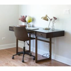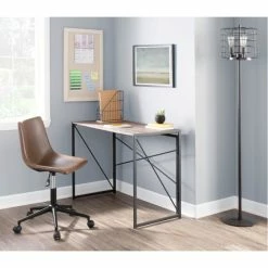 Sit in style with the industrial-rustic design of this task chair. A faux leather upholstered seat with unique stitching sits on a sturdy metal, 5-star base. Perfect for you industrial inspired office, choose between two upholstery options.
