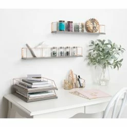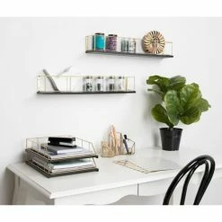 Showcase favorite decorative items, picture frames, and more with this set of shelves. Made from wood with metal detailing, these shelves are the perfect addition to any room in your home or even in an office.