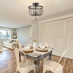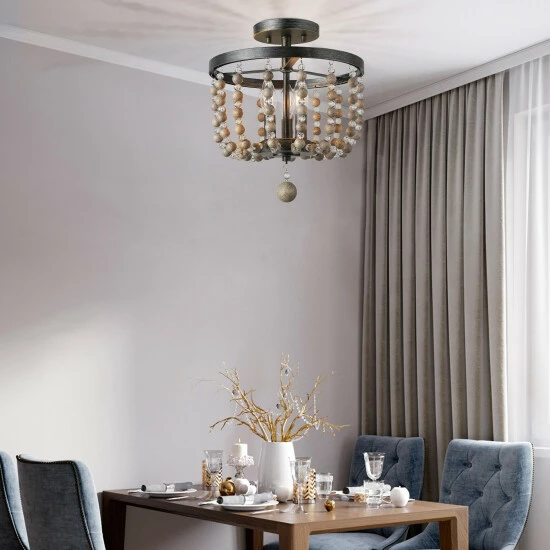 Classic bohemian style of this flush mount ceiling light. Combined with both crystal and wood beads surrounds the light. The brushed silver metal finish fulfills an old-school and rustic flair to the light, which makes it fit in different kinds of indoor dΓ©cor for giving you a unique attraction and vivid vibe.Β