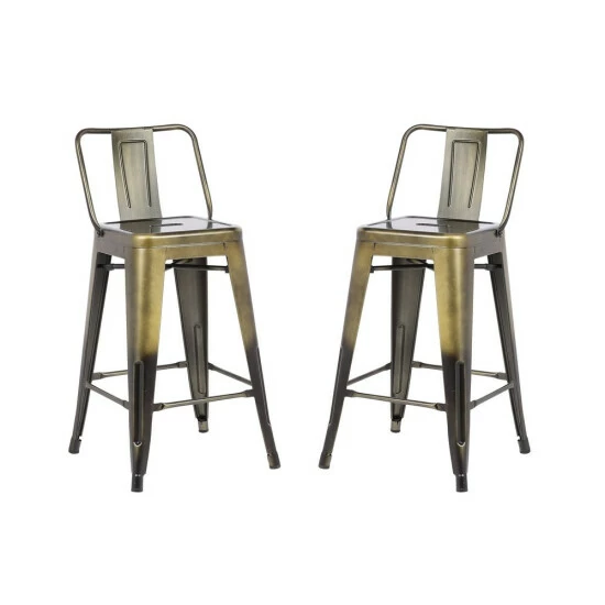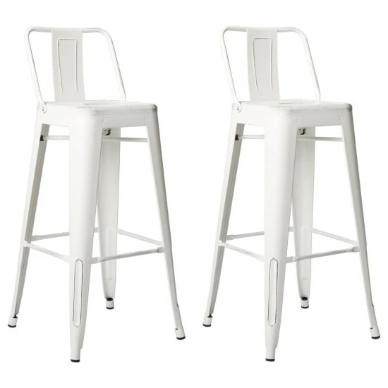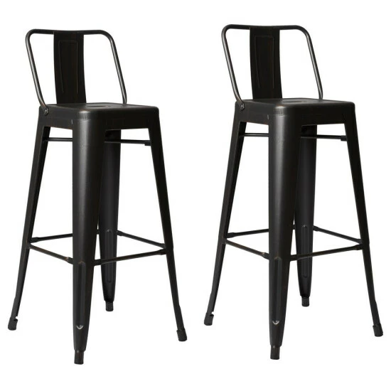 Add some extra seating to your home with this set of two 30-inch bar stools. Sturdy all steel construction with peg-shaped legs and a square seat offer a contemporary addition to any decor. The simple backrest includes a curved bar with a metal plate to complement the rest of the design.