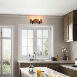 It is a natural wall sconce in Iron construction and displays a wooden presence. The wall light combines the elegance and natural touches with the use of 2 exposed bulbs (Not included). It adds some nice elements and abundant lighting to illuminate and decor your space with industrial style to complement any bedroom, entry, hallway, bathroom or living room.