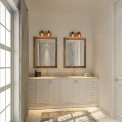 This 2-light vanity wall sconce was designed with a farmhouse-style which will work beautifully in both traditional and modern decors. Hand-applied finish provide a unique elegance and beauty to enhance any home. Featuring farmhouse styling, this light adds a sophisticated look to your decor.