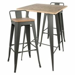 - Includes one bar table and two low back bar stools