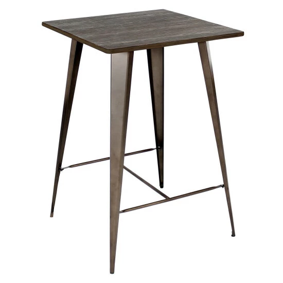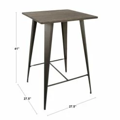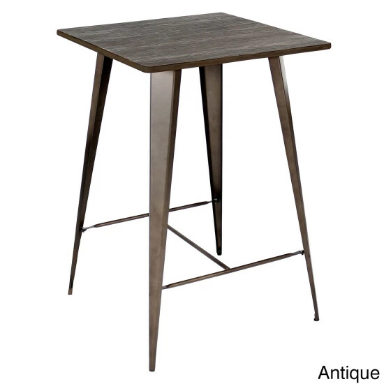 Bring the bar home and have your daily drink on this high table. Standing at 41 inches, this pub inspired table is designed to seat two and fit well into small spaces. Show your hip side by bringing this urban bar table with an industrial feel wherever in the house you want to have a good conversation and a good drink.. The contemporary dining table top comes in Espresso or Antique wood finishes.