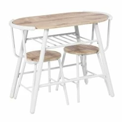 Perfectly suited to cozy spaces, this rustic 3-piece bistro set is a charming addition to any kitchen or dining area. Made of heavy-duty, powder-coated steel and finished with laminate tops and seats, this dining set is as durable as it is functional and attractive. Create a compelling and cohesive aesthetic in your space with this three-piece dining set, which includes one table and two chairs.
