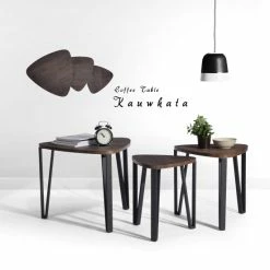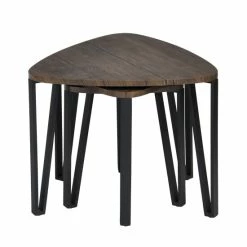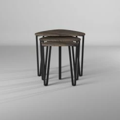 Give your living room plenty of surface area to display plants and framed photos with these three nesting tables. Their bases are made from steel in a black finish and feature three hairpin-style legs for a mid-century-inspired silhouette. Made from engineered wood in a neutral brown finish, the tabletops strike a triangular shape with rounded corners to create a distinctive look. These tables measure 14.17″, 14.17″, 15.9″ tall, so you can tuck them under one another to save on some floor space. Assembly is easy – all you have to do is attach the legs.