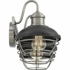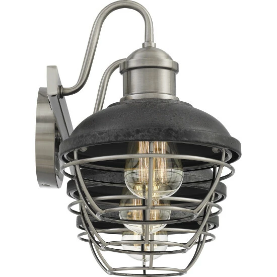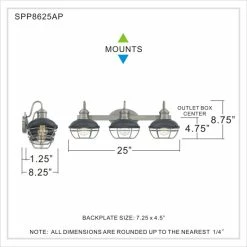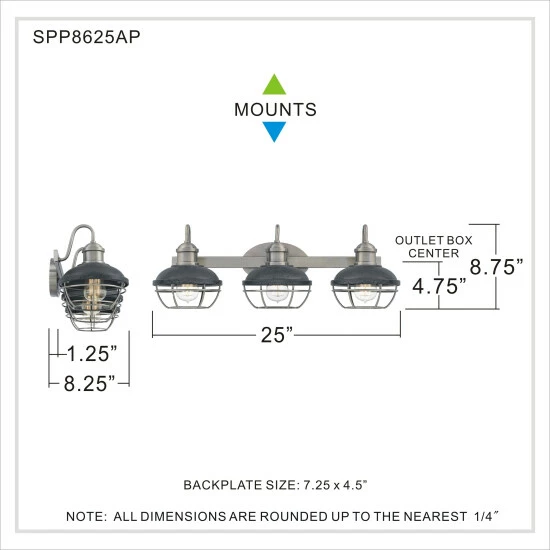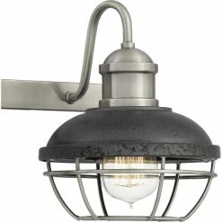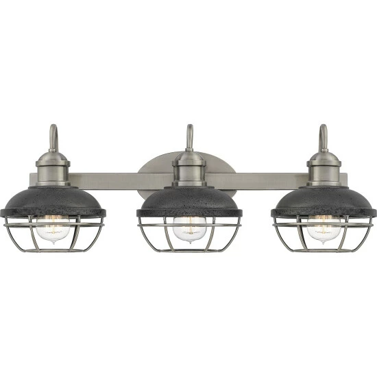 The industrial style of the Sandpiper collection will instantly elevate your bathroom. This fixture is finished in an Antique Polished Nickel and complemented with Distressed Iron. The metal cage shades add an interesting design element without sacrificing light. All Sandpiper bath fixtures can be mounted as uplights or downlights.