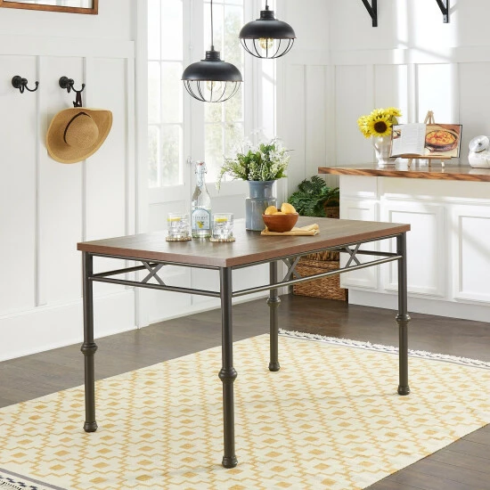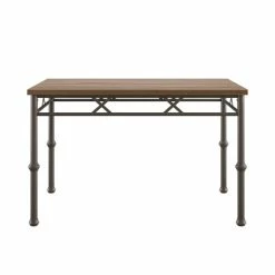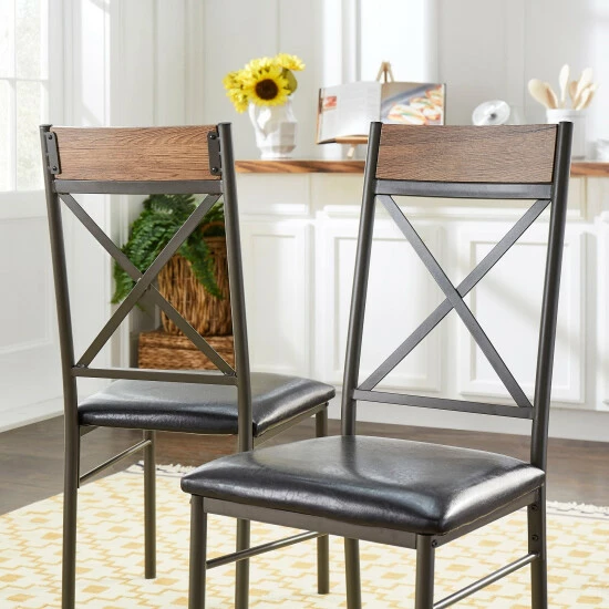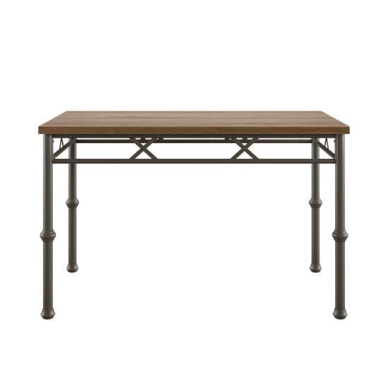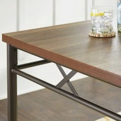 Simple, industrial flair makes its way into your kitchen or dining nook with this brown finish five-piece dinette set. This set displays styled qualities of a sleek, dark brown, powder coated metal frame and is the perfect size for small, compact spaces.Β
