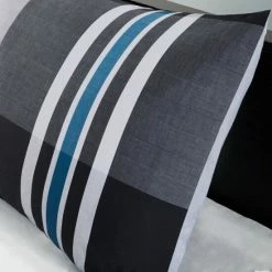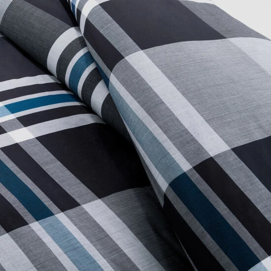 Lend a pop of color and sophistication to your bed with this handsome duvet cover set. Black, white, grey, dark grey and a pop of blue thread are woven together to create a crisp plaid pattern perfect for a fresh update to any room. This set is comfortable and soft to the touch while featuring easy-to-clean machine-washable 100-percent cotton materials. Dress up any bed in your home by selecting twin, full/ queen or king sizes.