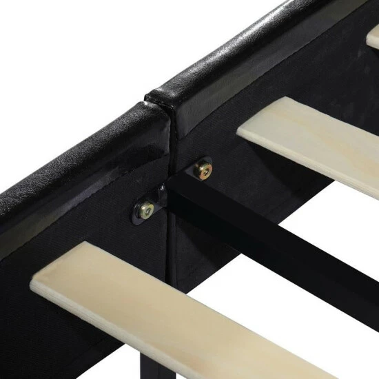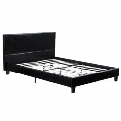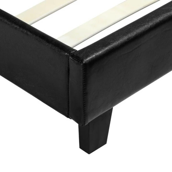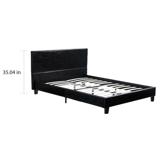 Welcoming and comfortable, this faux leather-upholstered, platform-style bed makes for the ultimate sheep-counting sanctuary. Your mattress can be put on the slats directly, so abandon the box springs, as this piece lets you save money and time. In addition, it is easy to assemble, for nearly instant effortless enjoyment.