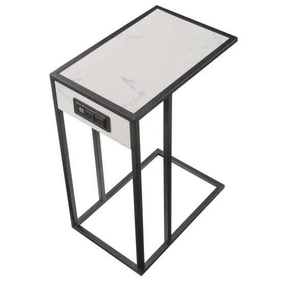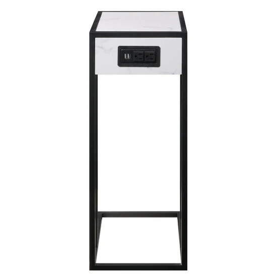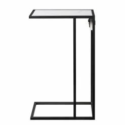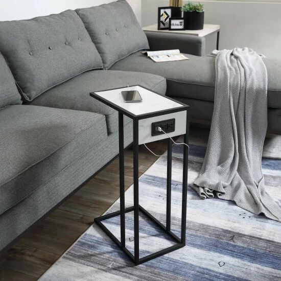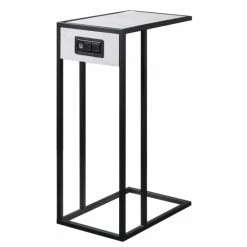 Scoot the foot of this charming table under a chair or sofa for the perfect spot for snacks, reading, and charging your phones. Convenient features meet wonderful style in this chic and sleek little c-shaped sofa table.