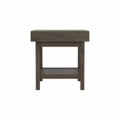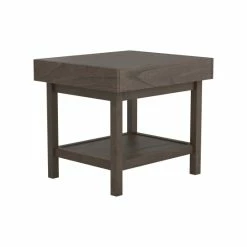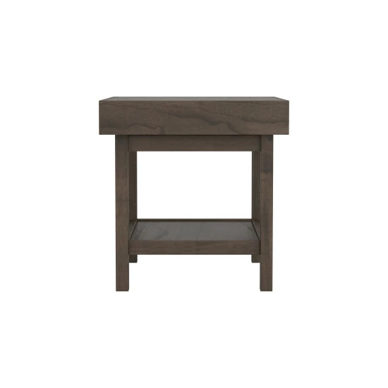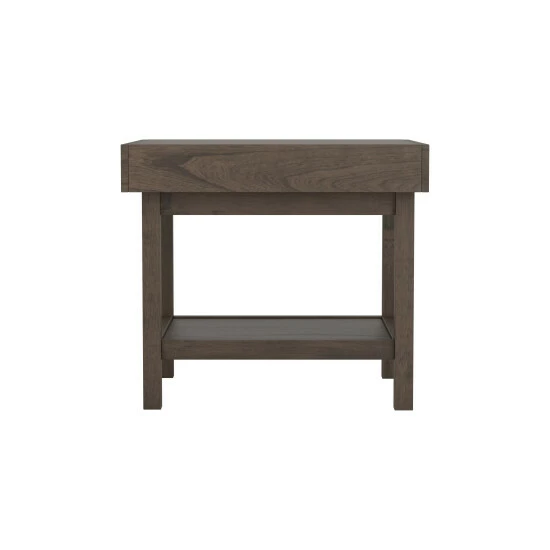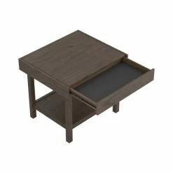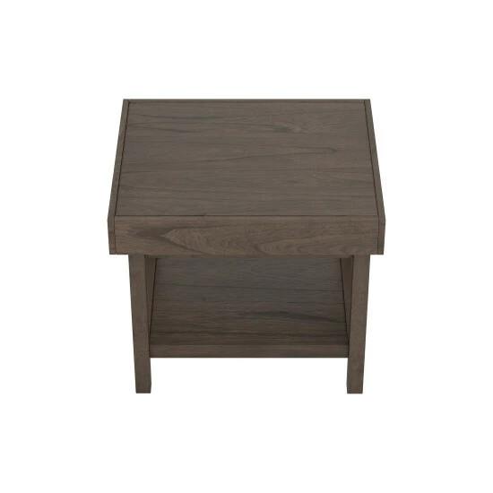 Lend a rustic little icon to your living space with the eye-catching geometry of this end table. This unique end table offers a perfect blend of convenience and sophistication. The bold silhouette is treated to a wheat brown finish with a wire brushed veneer for a hint of classic style. The hidden felt-lined drawer provides a secure stash spot for valuable items. The open storage shelf underneath is ideal for storing books, magazines, and other lounging essentials.