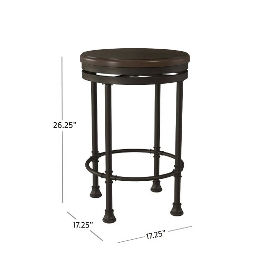 Sleek and slender. The Carbon Loft Thatcher Backless Swivel Counter Height Stool is versatile in design and style. Dark Brown metal pipe legs and bun feet combine with a Distressed Walnut wood seat to create a neutral look with an industrial feel that’s a complementary match. Perfect at your counter height dining table or kitchen island, the Carbon Loft Thatcher Backless Swivel Counter Height Stool is a handsome addition to your home. Includes one stool only. Assembly required.