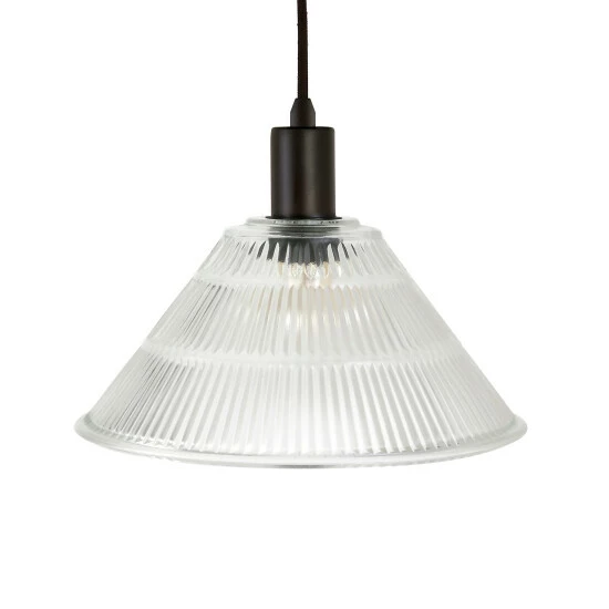 Β Β Β Β β’ The bell shape of this ribbed glass shade casts light in the direction of Β Β interest.