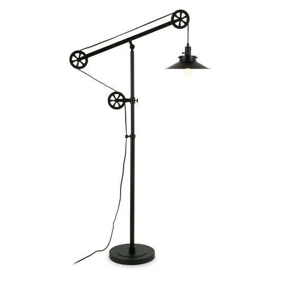 This distinctive, eye-catching industrial floor lamp is made to be the center of attention in your space. It’s a conversational modern twist on a traditional, classic design. Handcrafted from metal in a deep contemporary blackened bronze, brass, or steel finish, and flaunting an adjustable pulley system, this piece makes for a fantastic centerpiece anywhere.