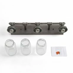 Crafted of rusty round iron frame with capiz shells dropping down, this center island lighting adds a feeling of coastal allure to any space. It requires 1 exposed Edison bulbs?Not included). Pair it with any bulb to create a new unique look. Great pick for a beach themed room.Add a rich ambiance to your room with this vanity light in the hand-painted finish.This handcrafted 3-Light wall sconce features 3 clear, quart-size, mason jars with a look of days gone by for exceptional illumination of your space, which adds a romantic atmosphere to your home.Bring warm and unique illumination to your bathroom with this industrial water pipe metal wall light.