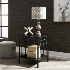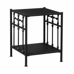 This industrial open night stand is the perfect way to enhance your room with a classic vintage style. The distressed metal finish paired with turned spindles create a truly unique look. This night stand comes in many color options, making it universal and adaptable to any space, while offering a unique designer look.