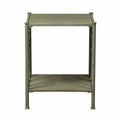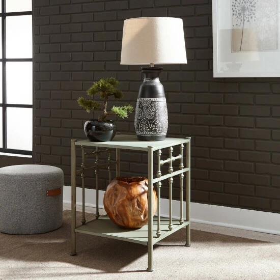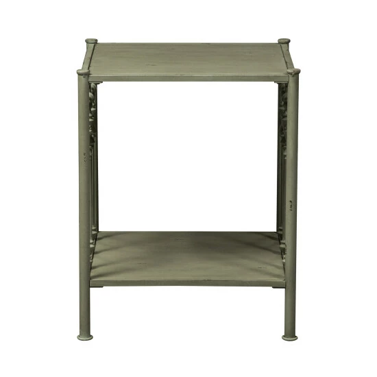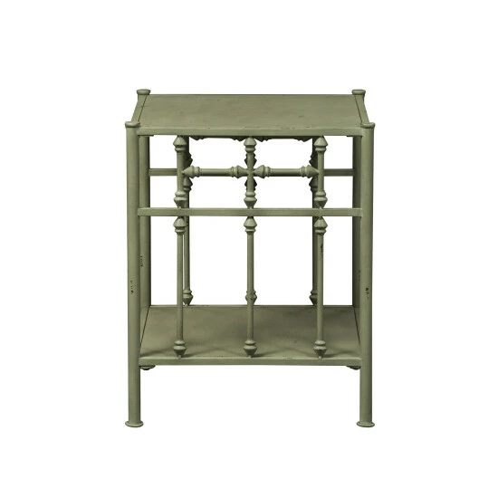This industrial open night stand is the perfect way to enhance your room with a classic vintage style. The distressed metal finish paired with turned spindles create a truly unique look. This night stand comes in many color options, making it universal and adaptable to any space, while offering a unique designer look.