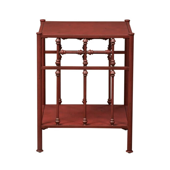 This industrial open night stand is the perfect way to enhance your room with a classic vintage style. The distressed metal finish paired with turned spindles create a truly unique look. This night stand comes in many color options, making it universal and adaptable to any space, while offering a unique designer look.