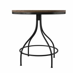 Indulge in classic vintage styling and industrial feel with the Vintage Series pub table. Crafted of pine veneer and metal, this piece features a fixed wood tone top, nail head accents, and a powder coated black metal base to give this piece a two-tone look. Distressed metal finishing offers a unique designer look.