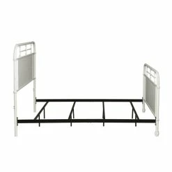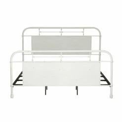 - Queen Metal Bed – Antique White: W 64.5 in. x L 85 in. x H 53.88 in.; 103 lbs.